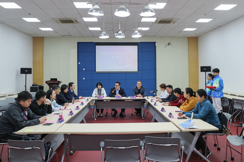 江苏省乒乓球协会大学分会成立大会在我校同期举行。会议听取了大学分会赛事计划汇报,并举行了聘任仪式,我校大学体育部主任白洁受聘担任副会长。江苏省乒乓球协会大学分会是江苏省乒乓球协会的重要分支,未来将着力构建大学生乒乓球交流平台,助力省乒协的系列工作开展,持续普及乒乓球运动,吸引更多以大学生为中心的人群参与其中。