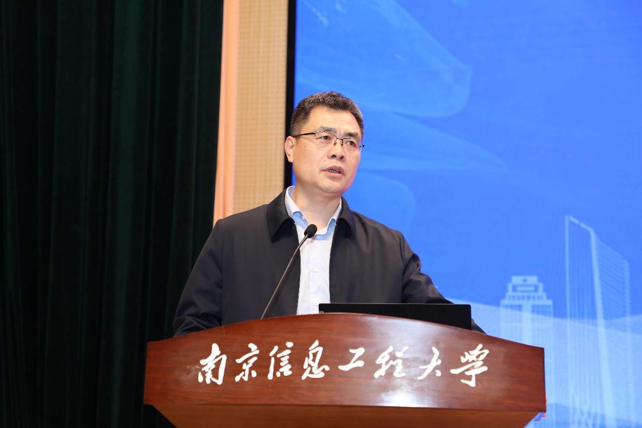 我校领导对前来参加活动的领导和嘉宾表示衷心感谢,并简要介绍了学校在主动对接国家战略需求,顺应科技发展趋势,深度开展校企合作方面的具体情况。学校一直坚持开放协同发展,推动校地融合、校企合作、成果转化,不断增强服务地方经济和社会发展的能力和水平,通过探索高层次人才双聘双落地、共建校企拔尖人才培养班、设立现代产业学院和卓越工程师学院、引进校企研究院、深入南京产业园区培养专业学位研究生等创新校企合作举措,在拔尖人才培养、高质量就业和升学、产学研方面取得了显著成果。近年来,学校通过锐意改革,创新办学理念,在一流学科布局、高水平师资队伍建设、高素质人才培养、服务经济社会发展等方面取得了显著成效,培养了众多深耕在气象行业和科研一线的优秀校友。期望通过此次活动,加强政府、企业、学校三方联系合作,搭建资源共享平台,促进产学研用融会贯通,科技高速发展,为学校高质量发展增加新动力。