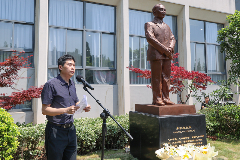 “朱先生对年轻人的循循善诱、谆谆教诲、耳提面命,至今仍历历在目”。校领导深情回忆过去与朱乾根先生的点滴往事。他说,南京信息工程大学如今的独特气质和大学精神,是风风雨雨中笃定前行、追梦过程中自强不息得来的,是一代代前辈先师在严谨治学中带领全校师生淬炼出来的。今天,我们在这里举行朱乾根先生塑像揭幕仪式,就是要传承和发扬他大气包容、严谨求实、育人本位的精气神,激励师生铭记校训,矢志推动学校事业前行和发展。