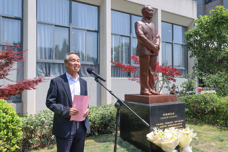 亲属代表、我校大气与环境实验教学中心主任朱彬教授在致辞中感谢学校在校庆之际举行庄重的塑像揭幕仪式,这是对先生一生为气象事业贡献的巨大肯定,也是对他本人为人为学的由衷尊重。他说,父亲作为那个时代的教师代表,展现出的艰苦创业、务实求真的精神,值得一代代师生不断继承和发扬。