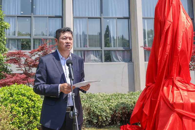 随后,朱乾根先生亲属代表朱彤和郑国光、矫梅燕、陈镜明、刘聪共同为塑像揭幕。学生代表敬献鲜花。