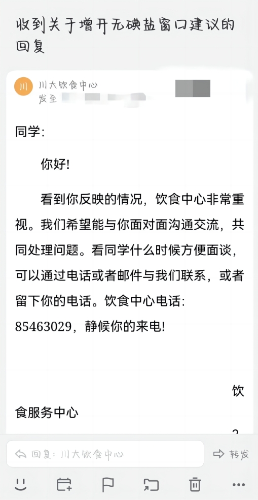 负责回复留言的食堂工作人员说