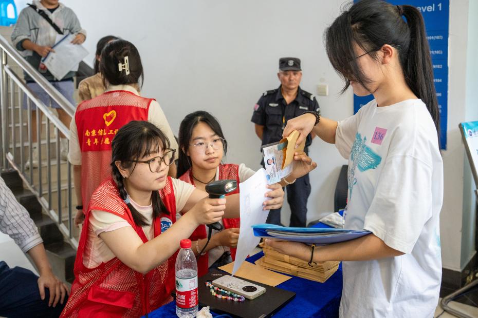6月15日,考生与家长陆续从东苑东门、北门、南门及中苑、西苑南门入校,在工作人员的引导下规范行驶并按序停放车辆,校园周边交通井井有条。东苑体育馆报到处,志愿者们耐心答疑解惑,为考生们送上精心准备的材料与最真挚的祝福。