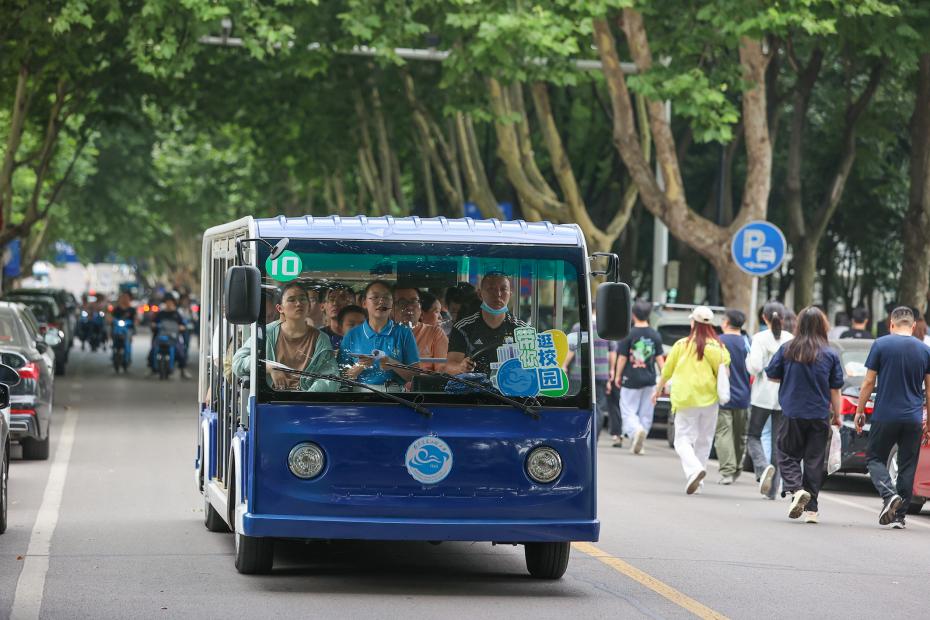 “校园开放日”仍是今年综评中的主题词之一。雷丁学院与沃特福德学院特别举办校园开放日分场系列活动,来自五洲四海的留学生小伙伴携手呈现一场多元多彩的“校园国际嘉年华”,让考生及家长们邂逅南信大多元文化律动的同时,感受到南信大国际化办学实力。各大实验室有序开放,学生社团竞相展演,快闪活动魅力四射,给考生及家长带来一场场美妙的视听盛宴。“第一感受是学校很大,文化氛围很浓厚。”来自南京师范大学附属中学的周同学说,他们一家乘坐小蓝车从体育馆出发绕校一周,“一路上目不暇接,我们参观了见山园,雕像作品栩栩如生,非常吸睛。”另一边,来自南京陪伴孩子参加综评的黄先生说:“南信大的校园很漂亮!希望孩子能顺利通过综评,来到这样美丽的校园里学习。”
