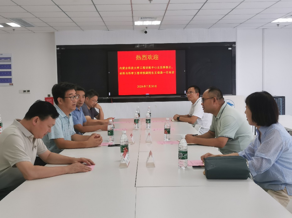 7月30日,内蒙古科技大学工程训练中心(创新创业教育学院)主任(院长)薛春江正高级工程师、材料与科学工程学院副院长王海燕教授(博导)、中心创新基地主任徐文利(教授级高级工程师)和中心金工实训基地副主任刘洪建一行来访。会议由我校工程训练中心主任庄建军教授主持,中心部分教师参加座谈。