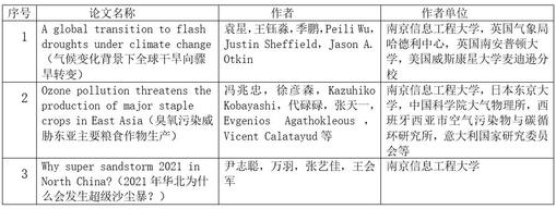 近日,2024年江苏省自然科学百篇优秀学术成果论文推选结果公布。我校袁星教授团队在SCIENCE期刊发表的题为“A global transition to flash droughts under climate change”的论文,冯兆忠教授团队在NATURE FOOD期刊发表的题为“Ozone pollution threatens the production of major staple crops in East Asia”的论文,尹志聪教授团队在NATIONAL SCIENCE REVIEW期刊发表的题为“Why super sandstorm 2021 in North China?”的论文成功入选。