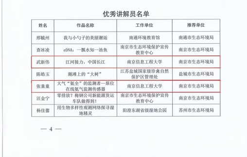 近日,江苏省生态环境厅公布了2024年度“我是生态环境讲解员”活动优秀组织单位、讲解员、宣传片名单。我校环境科学与工程学院武新伟同学、张童童同学获评江苏省“优秀讲解员”称号。武新伟同学入围国赛,荣获全国总决赛三等奖。