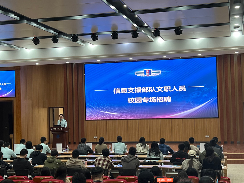 10月11日,中国人民解放军信息支援部队宣讲团在滨江楼报告厅面向我校学生开展文职人员招聘宣讲会。