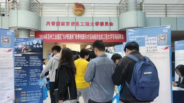 10月11日,我校在大学生活动中心举办2024年“校园苏州日”暨“就在张家港”秋季校园招聘活动南京信息工程大学专场。