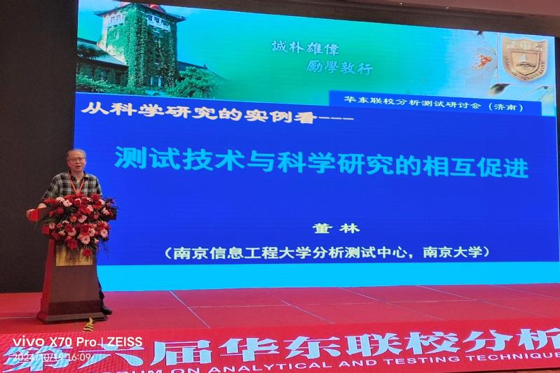 10月18-21日,第六届华东联校分析测试研讨会在山东济南召开。我校分析测试中心董林主任参加会议,并作题为“测试技术与科学研究相互促进”的大会报告。