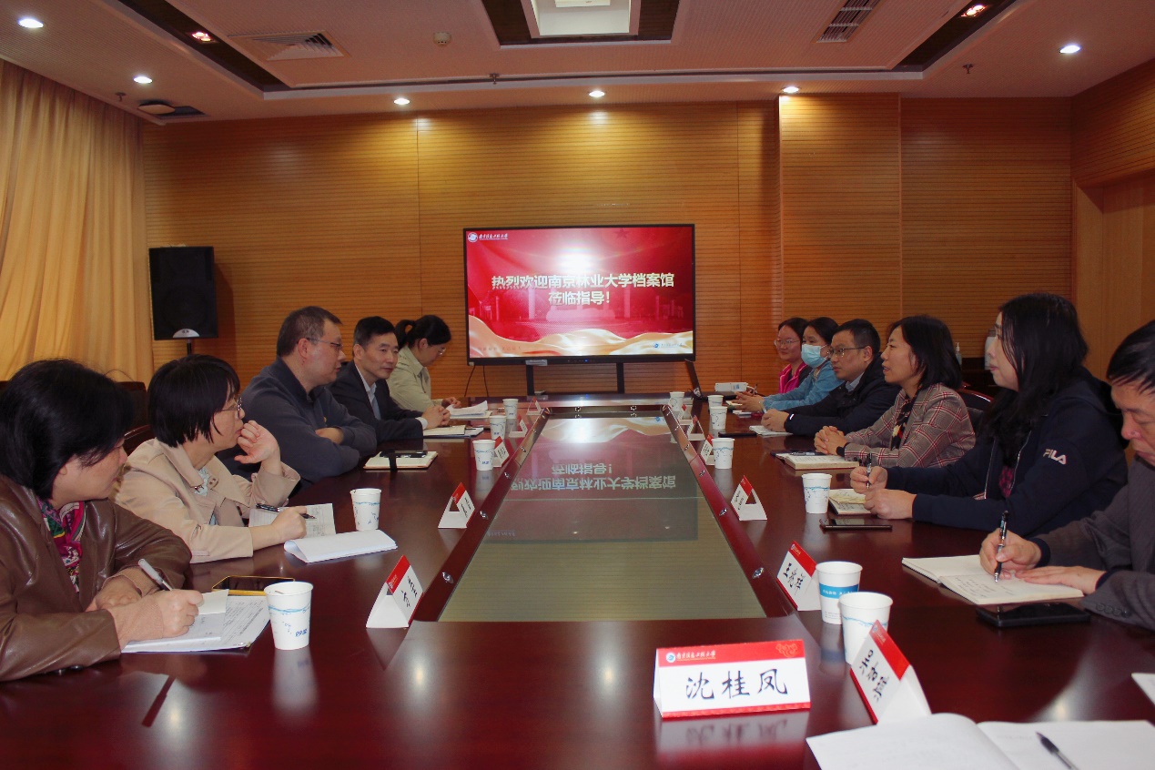 10月22日,南京林业大学档案馆馆长顾炜江一行莅临我校调研交流。我校图书馆(档案馆)馆长周彩红主持座谈会,副馆长张艳、副馆长陆勇以及全体档案工作人员参加座谈交流。