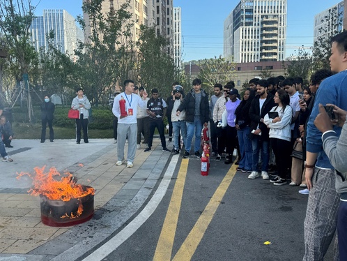 保卫处的老师们通过宣传手册、现场讲解、以及操作演示分别向留学生们介绍了宿舍消防安全要求、电动车安全防范、火场逃生六不要及注意事项、疏散逃生方法、常见消防器材使用方法以及逃生演练流程。并告诉同学们在逃生过程中一定要保持冷静,服从指挥,切勿慌乱。