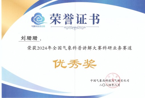 近日,中国气象局公布了2024年全国气象科普讲解大赛获奖名单,我校大气科学学院教师刘珊珊脱颖而出,获科研业务优秀奖,全国高校仅12名选手获奖。