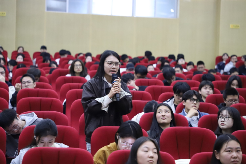 最后,同学们围绕学业、睡眠、过往经历等方面积极提问。孙静启发同学们正确面对学业压力,构建积极导学关系,在科研中寻找热情,在运动中找到自我。她提到,当意识到自己有心理问题时,应积极寻求帮助,努力改善情绪状态,调整好生活规律,不排斥心理咨询,找到适合自己的心理调适方法。