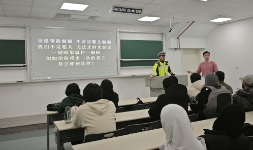 此次交通安全教育讲座不仅提升了留学生们的交通安全意识,还为营造安全、和谐的校园交通环境奠定了坚实的基础。李岩最后总结道,国教院始终把学生的安全放在首要位置,未来将继续深化与江北新区交警部门的合作联动,定期开展安全讲座和宣传教育活动,共同构建留学生交通安全教育的长效机制,不断提升学生们的交通安全意识,创造更加文明有序的校园交通环境。