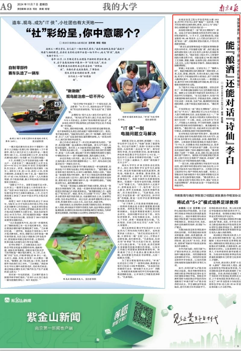 在南京信息工程大学信息科技大楼1913室,同学们不仅可以亲手“酿造”一坛好酒,了解不同地域和民族的酒礼酒俗,还可以与“诗仙”李白来场跨越千年的诗词对话……
