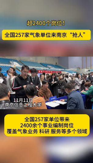 #南京本土视频新闻最快发布 【超2400个岗位!全国257家气象单位来南京“抢人”】今天,全国气象部门2025年度人才招聘会走进南京信息工程大学。远洋导航、⽣态环境、信息技术、数学物理……今年,气象行业对跨学科、复合型人才需求更加旺盛。