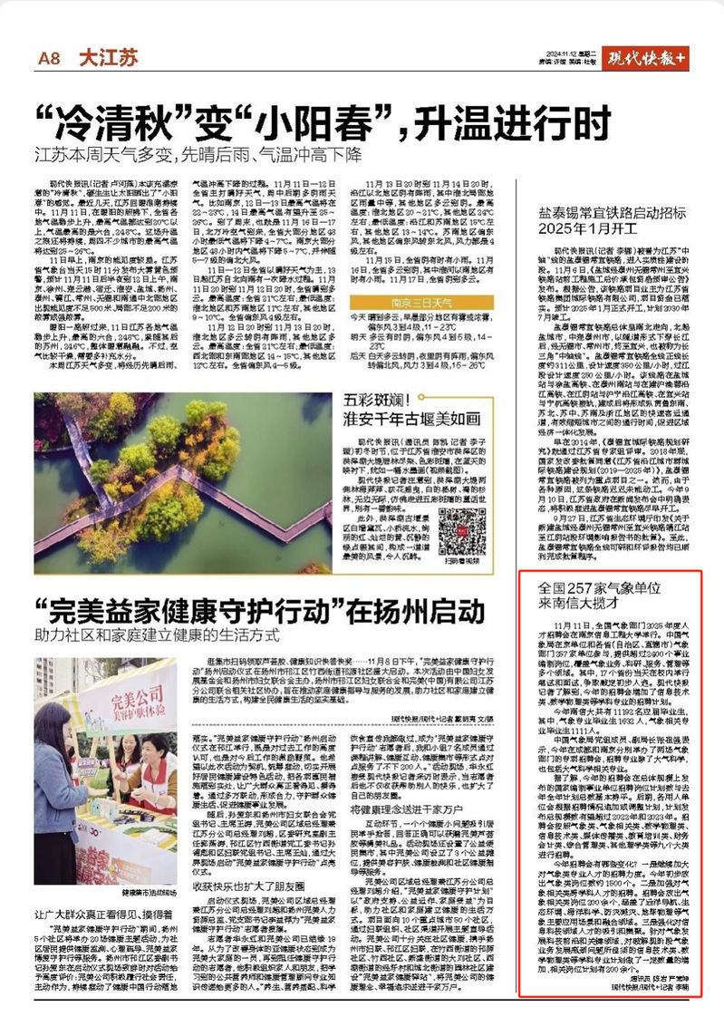 中国气象局党组成员、副局长张祖强表示,今年在成都和南京分别举办了两场气象部门的专项招聘会,招聘专业除了大气科学,也包括大气科学相关专业。