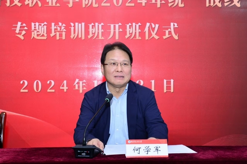 何学军表示,组织统一战线专题培训班旨在推进党外人士深入学习党的二十届三中全会精神,不断增强“五个认同”思想共识,持续提升参政议政和履行职能本领,在推动高质量发展中展现新担当、新作为。他说,全体参训学员要珍惜培训机会,深化理论学习,提升实践能力,以学习之钥,开启干事创业的新视野。同时,他对参训学员提出四点具体要求:一是细学细悟,深入学习贯彻党的二十届三中全会精神。二是群策群力,不断巩固统一战线的共同思想政治基础。三是同心同德,共同提升铸牢中华民族共同体意识成效。四是善作善成,继续为学校综合办学能力提升献计出力。