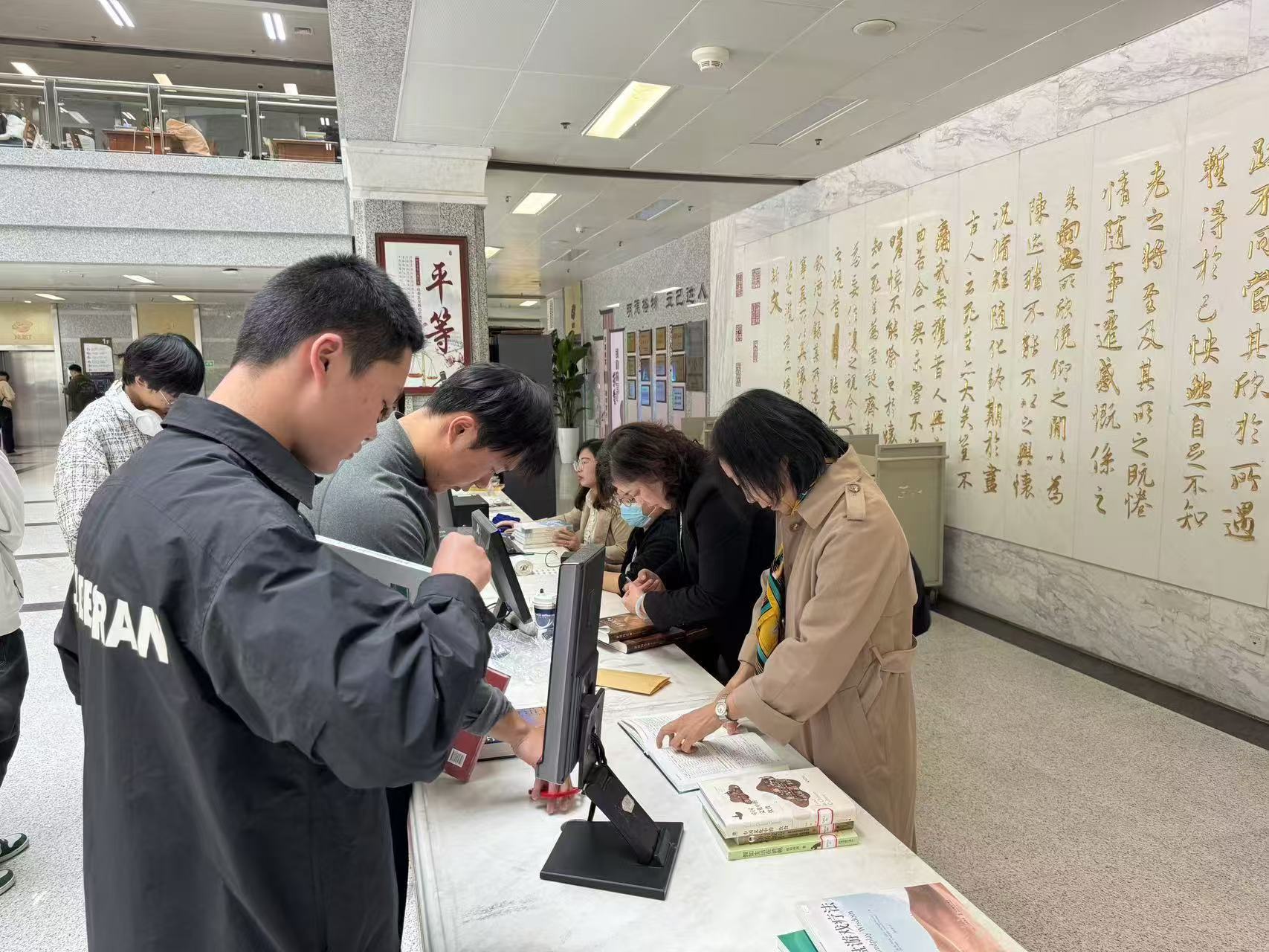 工作人员现场加工图书