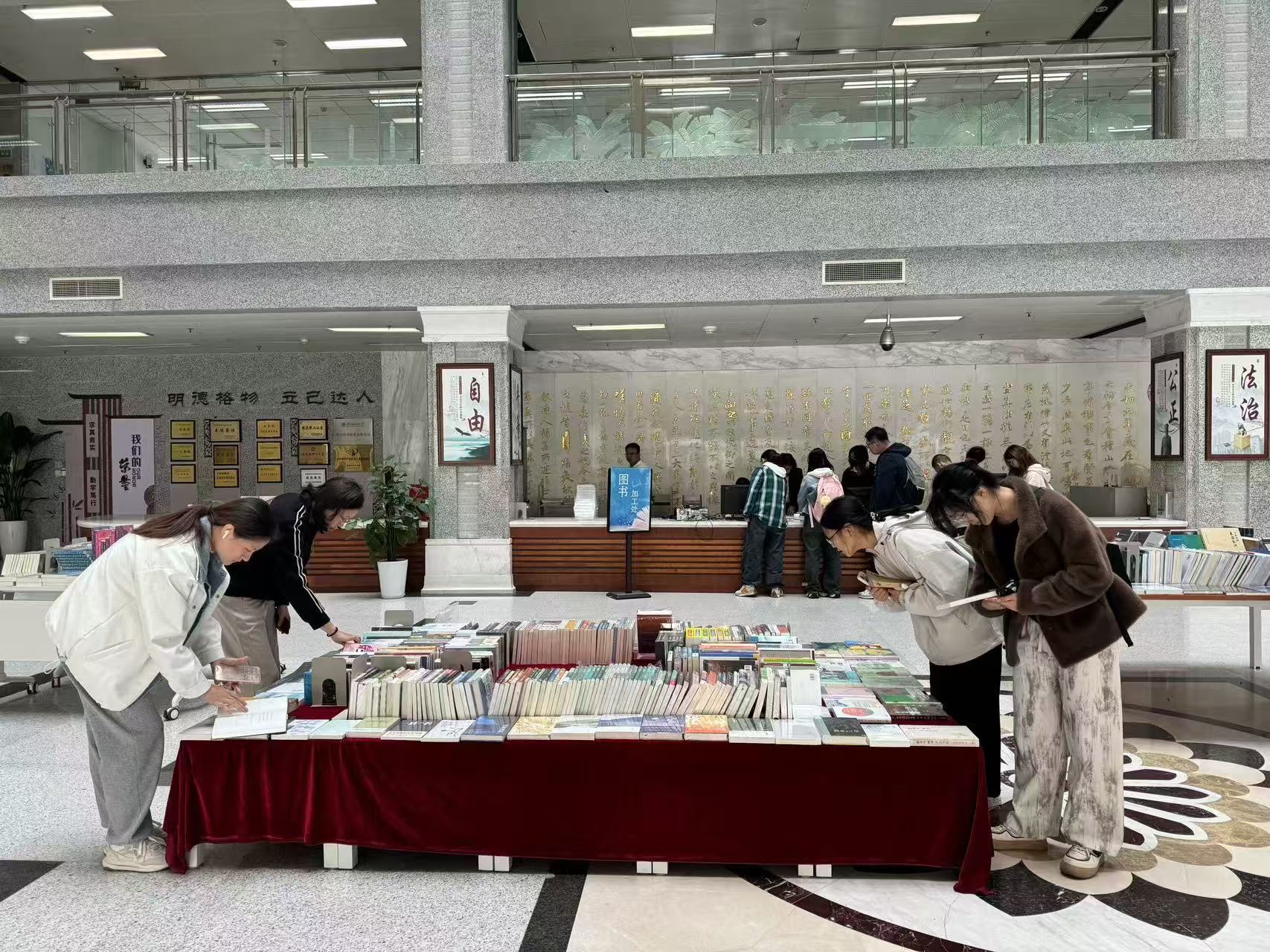 为了提高馆藏质量,满足同学们的个性化借阅需求,打造浓厚的书香校园氛围,我校图书馆特联合江苏凤凰新华书店集团有限公司南京分公司于10月28、29日开展了“书海拾贝—你选书,我买单”书展荐购活动。书展在图书馆一楼大厅举办,共展出1600余种近2000册图书,涵盖文学、社会学、经济学、理学、工学等多种学科。