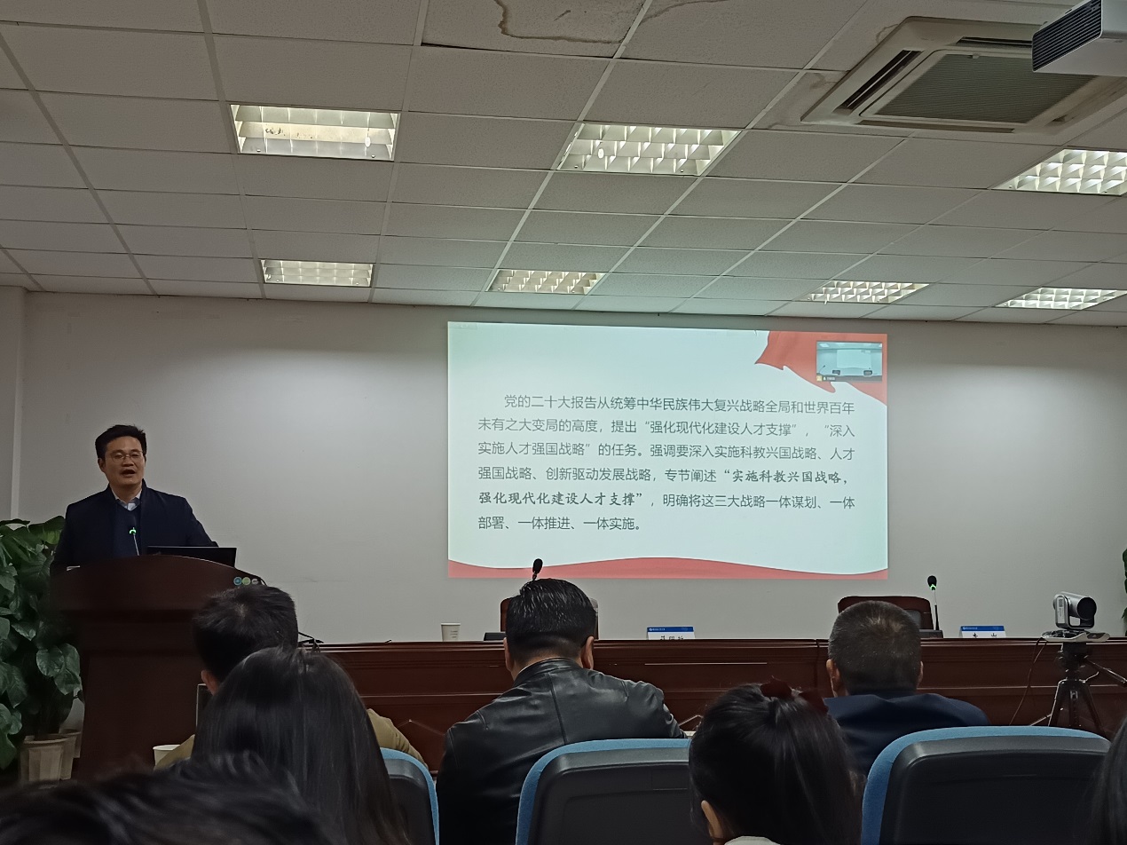 参会人员首先聆听了我校教师工作部部长蒋明敏教授讲授的题为《学习贯彻党的二十届三中全会精神,为发展新质生产力提供坚实人才支撑》的专题党课。蒋明敏首先传达了全会关于高质量发展的核心要求:高质量发展是全面建设社会主义现代化国家的首要任务,必须以新发展理念引领改革,立足新发展阶段,深化供给侧结构性改革,完善推动高质量发展的激励约束机制,从而塑造发展的新动能和新优势。随后,他深入解读了全会关于教育、科技、人才在中国式现代化中的基础性、战略性支撑地位。他尤其指出,要深入实施科教兴国战略、人才强国战略、创新驱动发展战略,统筹推进教育科技人才体制机制一体改革,以提升国家创新体系整体效能。在党课结束后,邳州市博物馆党支部王娜、天长科技局一级主任科员查桂银和永丰社区党总支书记彭荣伟先后结合各自实际工作进行了研讨发言、交流了学习心得和体会。