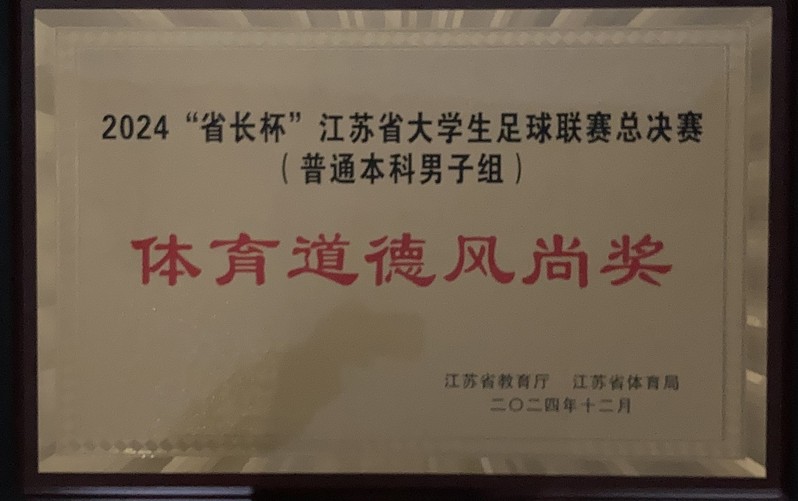 在刚刚落幕的2024“省长杯”江苏省大学生足球联赛(校园男子组)总决赛中,我校足球队以三胜两负的战绩斩获第三名,取得历史最好成绩。学校获得体育道德风尚奖。