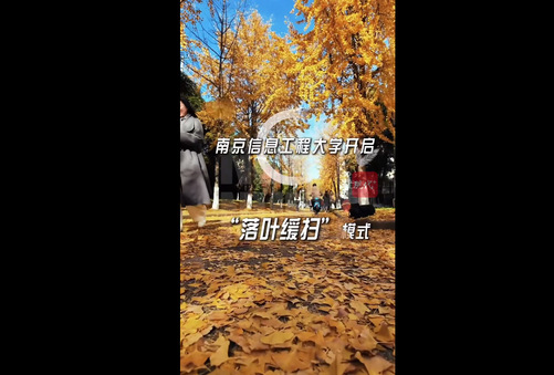 南京信息工程大学落叶缓扫,满园铺上黄金毯