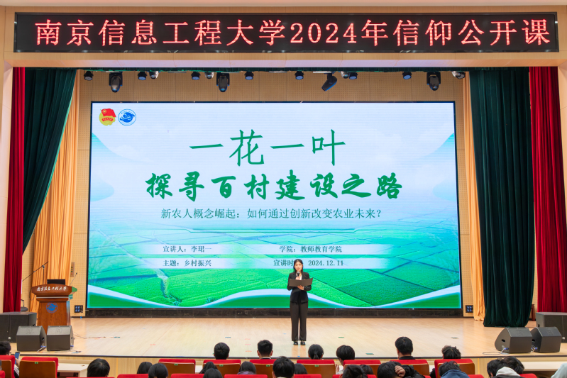 教师教育学院李珺一、沃特福德学院司马相腾、集成电路学院徐晖三位同学则用平实的语言讲述了乡村振兴的伟大成就,展望新时代乡村发展新路径。李珺一以《一花一叶,探寻百村建设之路》为主题,以几位投身农业的新农人和他们建设的新农村为例,领略新时代农业农村的变化,带领大家在一花一叶间探寻新时代新农村的建设之路。司马相腾以《乡村振兴取得的重大成就》为主题,介绍了当下乡村振兴战略取得的阶段性工作,通过几座村镇的今昔对比,向大家展示乡村工作取得的巨大成就,并展望未来,描绘出乡村发展的美好前景。徐晖以《激光慧眼赋能乡村振兴》为主题,深入实践,将青年的责任担当融入乡村振兴工作中,他为大家介绍了自己参与研发的农业设备,将科技融入乡村振兴,赋能新时代乡村发展,展示了新时代学子的青春风采。