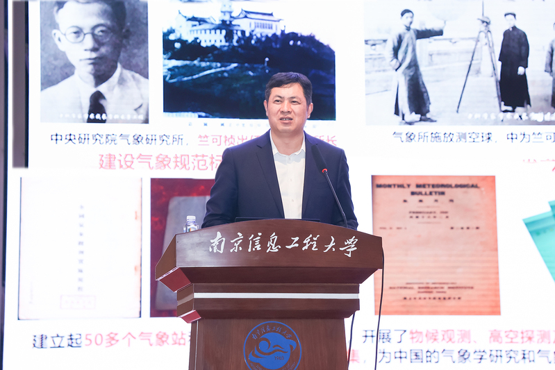 陈海山回顾了大气科学的发展历程,深入剖析了世界大气科学从定性到定量、经验到理论分析,再到综合气象科学体系建立的发展过程。他列举了气象领域古今中外一流大师在大气科学发展进程中的卓越贡献,讲述了中国气象发展的传承以及数值天气预报的演变和气象卫星观测技术的进步,带领同学们深入了解了大气科学学科发展的历史进程及其在世界历史发展中作出的贡献。随后,陈海山以时间顺序为经,以政策规划为纬,介绍了我校的初创使命、发展历程与当下的学科布局构建,回顾了我校在学科建设、人才培养、科技创新等方面取得的成绩。他指出,未来学校将通过学科再造、专业拓展、平台升级、校地融合、国际合作等多种途径,持续推进大气科学一流学科建设,以一流学科建设推动学校事业高质量发展,以创建世界一流大气科学学科为目标不断前进。他勉励同学们,要自觉践行一流学科使命的担当作为,做饱有情怀、乐观豁达、担当有为的时代青年。