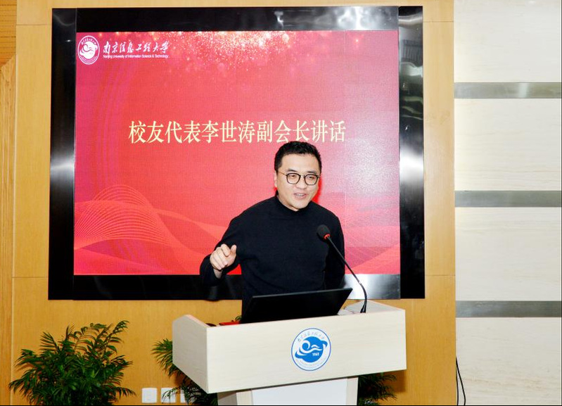 优秀校友代表、硬腿子工作室创始人、2002级声像技术专业李世涛对母校领导老师的牵挂与关怀以及校友会筹备组的辛勤付出表示感谢。他深情回忆了在母校学习生活的时光,表达了对母校的感恩与思念,表示会借助校友会的成立,积极参与、支持校友工作,为母校的发展添砖加瓦。
