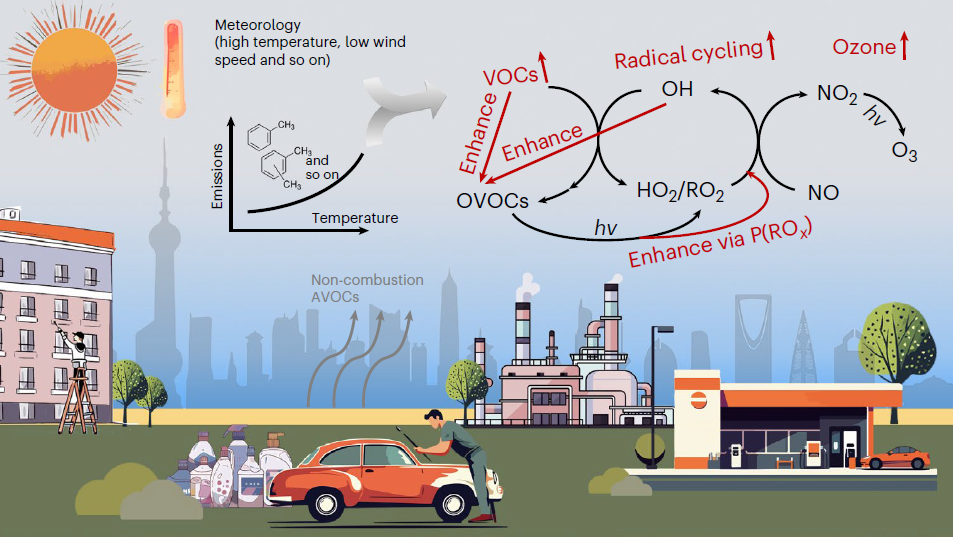 近日,我校环境科学与工程学院REACH团队在《Nature Geoscience》发表题为“Increased urban ozone in heatwaves due to temperature-induced emissions of anthropogenic volatile organic compounds”的研究论文。该论文基于地表观测的夏季挥发性有机物(VOCs)浓度、典型排放源的排放测试以及区域空气质量模型CMAQ,评估了高温热浪期间人为源VOCs排放增加对城市大气中臭氧(O3)污染的影响。