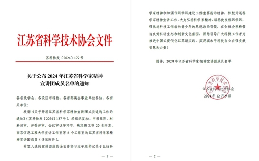 入选“2024年江苏省科学家精神宣讲团成员名单”