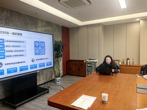 接下来,科技处副处长李蓓蓓围绕学校科协科普情况、特色亮点工作和工作设想等方面作汇报。她表示,学校高度重视科协科普工作,扎实做好科技工作者服务,积极推动科学普及和科技创新“双翼齐飞”,2024年实施“科普行动”计划,组织科技活动周、全国科普日、世界气象日、校科普讲解大赛等重点活动示范效应显著,多次获中国科协、中国气象学会和江苏省科协等表彰。