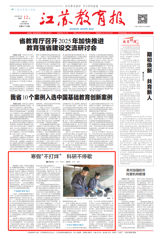“师生扎根基层,把科学知识运用到现代生产,推进产业升级,是学校人才培养改革的一个缩影。”扬大党委书记丁建宁介绍说,寒假期间,全校近3万名学生带着问题或课题奔赴祖国大江南北,在青春实践中挺膺担当。