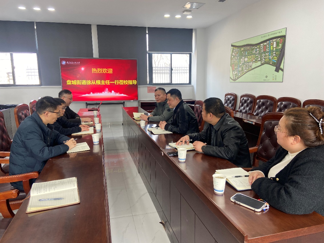 28日上午,盘城街道党工委副书记、办事处主任徐从根一行来访我校,就项目建设、招商引资、安全生产等相关问题进行调研交流。我校资产处、总务处、基建处相关人员参加座谈。座谈会上,相关处室负责人对盘城街道一行的到来表示欢迎,并结合统计情况、基建项目、后勤日常保障进行了介绍。徐从根对学校的热情接待表示感谢,并高度评价了我校在服务地方经济社会发展中发挥的重要作用,并表示要进一步加强与我校合作交流,做好属地服务工作,双方进一步增强联系,深化合作,共同为江北新区的高质量发展贡献力量。座谈会现场