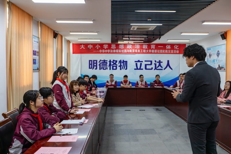 为深入推进大中小学思想政治教育一体化建设,推动大中小学社团深度互动,3月24日,中华中学初中部团委书记吕姝一行来我校开展模联社团实践交流活动。我校模拟联合国社团、校研究生会代表、校团委相关人员出席本次活动。