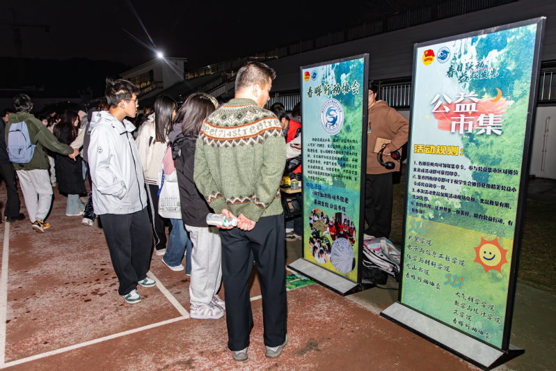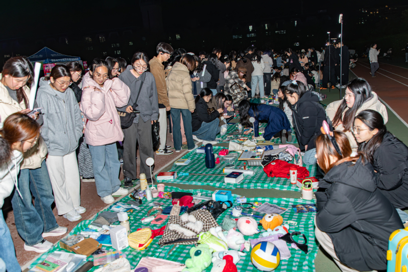该活动分为草地音乐节、跳蚤市场、公益集市、荧光夜跑四大板块,吸引了数千名在校师生参与。草地音乐节上,我校“校园音乐协会”与“0九0六吉他社”通过律动的音乐和舞蹈表演将师生汇聚在田径场中央;跳蚤市场上,每天有25个通过“抽签摇号”产生的经营摊位,通过“以物换物”等方式进行旧物置换,让旧物焕发新机;公益市集携爱心与巧思登场,师生可以通过参与各学院和公益类社团设置的公益活动、集市的各项活动进行集章,并在校学生会的摊位套圈领奖;“荧光夜跑”让跑道化身光影长廊,同学们佩戴荧光手环尽情奔跑锻炼,以脚步丈量大地,用荧光标记信仰,用每一束微光书写青春。