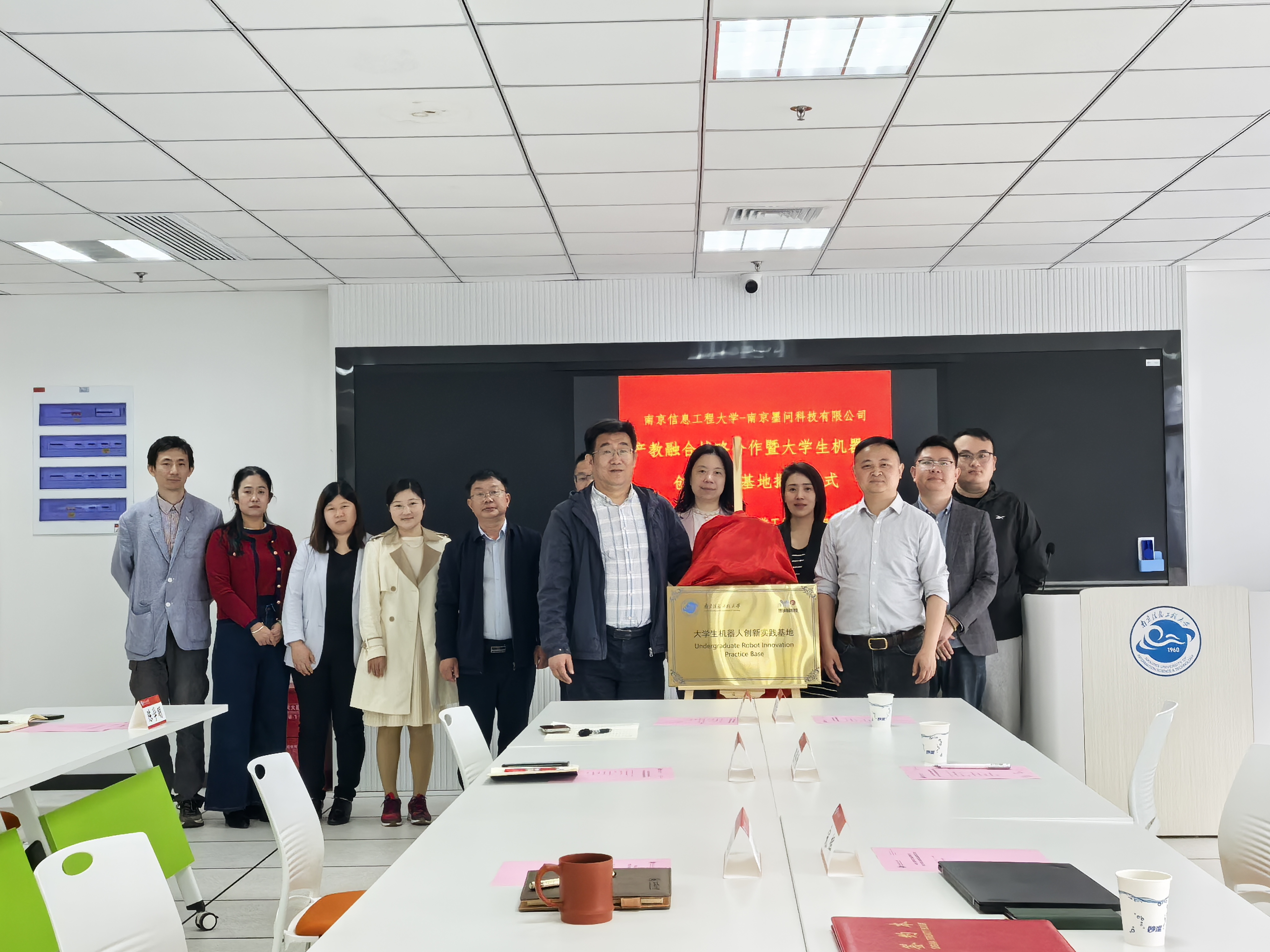 4月8日,工程训练中心与墨问科技有限公司产教融合战略合作暨大学生机器人创新实践基地揭牌仪式在临江楼举行。墨问科技有限公司总经理宋辉、市场部经理顾健、销售经理陈修胜、技术部经理曹寿宇,中心主任庄建军、副主任陈苏婷和部分教师代表参加仪式。会议由庄建军主持。