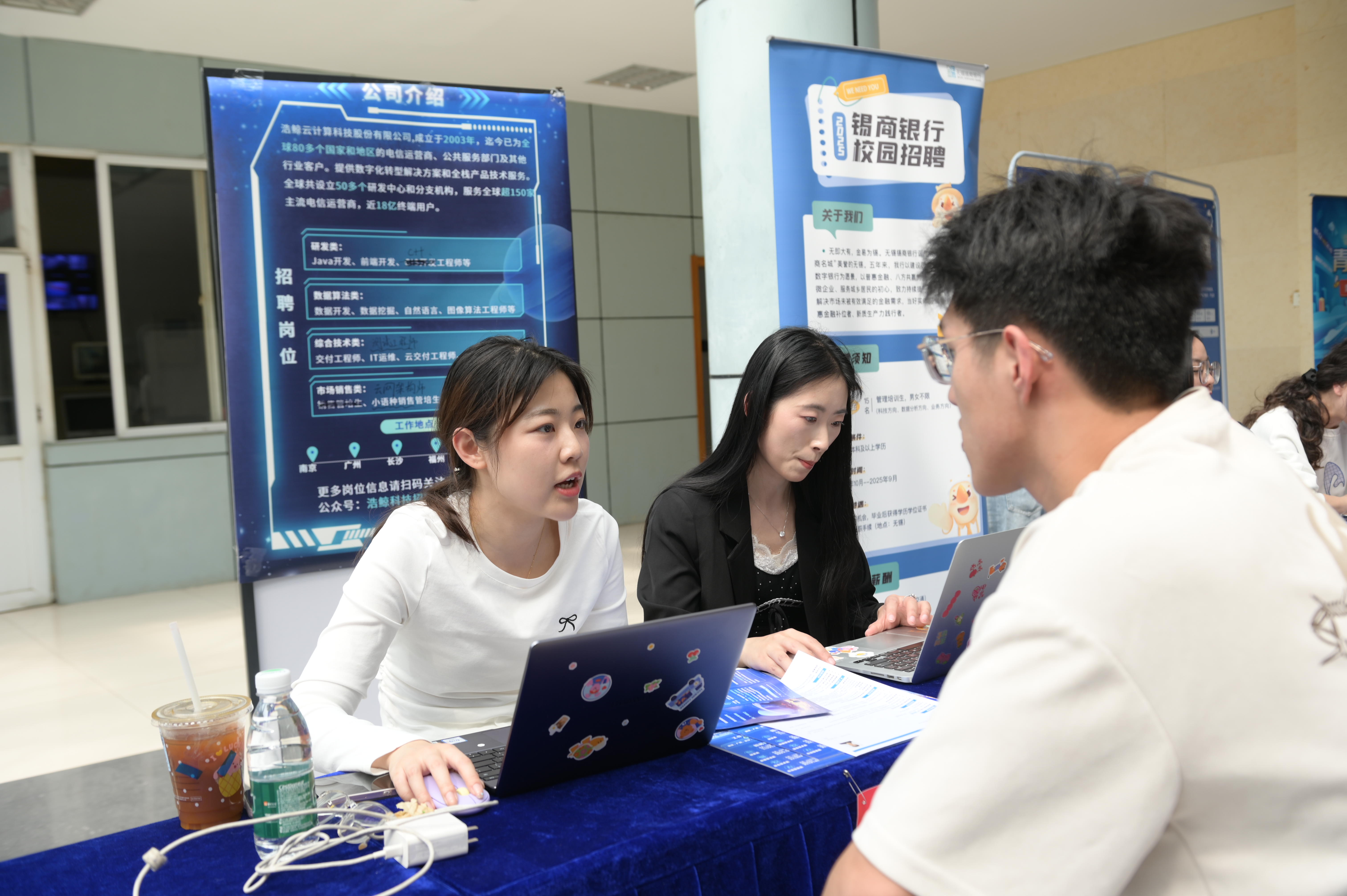 为进一步促进我校毕业生高质量充分就业,不断开辟校企合作渠道,优化校企合作平台,助力毕业生精准求职,4月8日下午,由学生工作处、研究生工作部主办,计算机学院、网络空间安全学院联合软件学院承办的“‘E’起筑梦,‘职’等你来”南京信息工程大学2025年春季计算机类专场招聘会在大学生活动中心一楼顺利举行。招聘会现场人头攒动,300余位学子现场投递简历并面试。