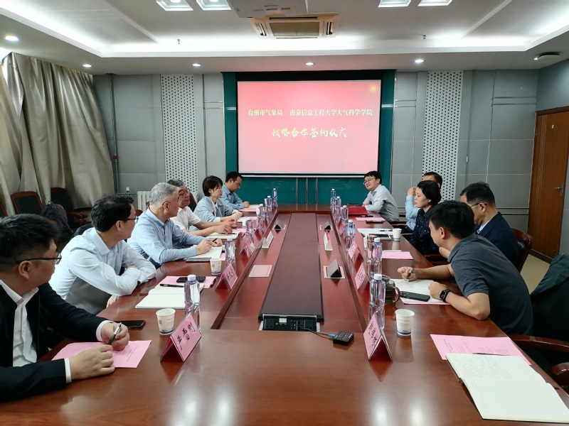 4月11日,台州市气象局党组书记、局长冯坚,党组成员、副局长鄢志波一行6人来学院调研交流,推进合作,举行大气科学学院与台州市气象局战略合作签约仪式。大气科学学院领导班子成员出席签约仪式,仪式由大气科学学院副院长张文君主持。