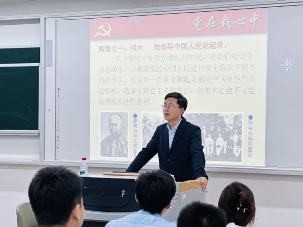 党课最后,朱文镇对在场学生提出殷切希望,希望同学们牢记共产党人为中国人民谋幸福、为中华民族谋复兴的初心和使命,始终怀有一颗爱国之心,培养高尚的道德修养,努力增长学识,练就过硬本领,发挥好模范带头作用,为党的事业贡献最大力量。
