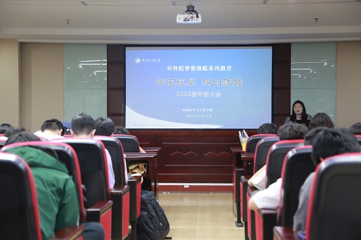 为强化学生安全意识、深化学风建设、激发科创活力、助力学生成长成才,环境科学与工程学院于4月17日在学科1号楼N201会议室召开2023级“学风筑基,科创赋能”主题年级大会。会议由辅导员阮小燕主持,全体2023级学生参会。会议围绕安全教育、学风建设、科创实践与未来规划展开,为学生指明方向、凝聚力量。