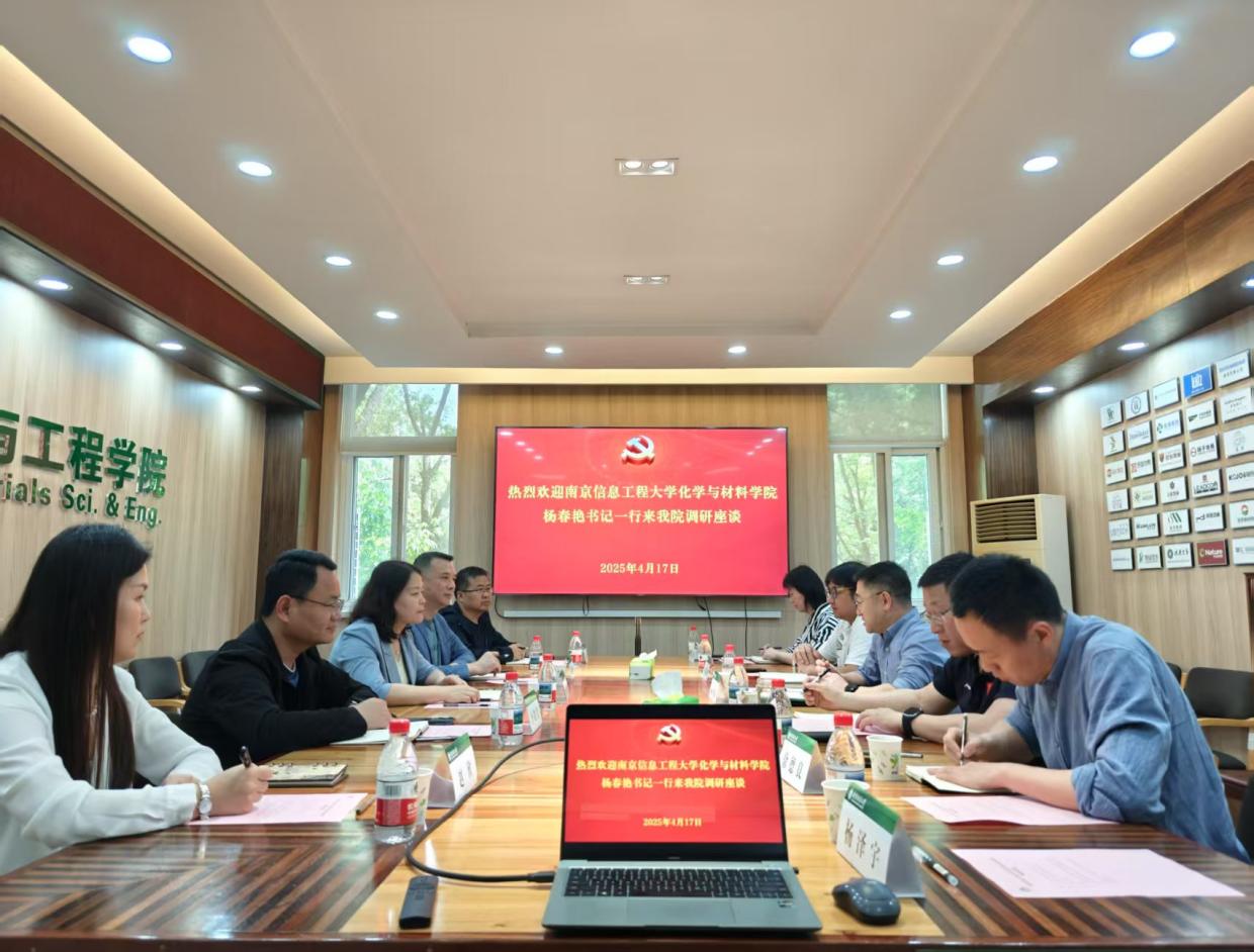 4月17日下午,化学与材料学院党委书记杨春艳率队赴南京林业大学材料科学与工程学院开展党建工作调研交流。南京林业大学材料科学与工程学院党委书记孟国忠及相关负责同志热情接待并参与座谈。化学与材料学院党委副书记、副院长奚桂华,副院长李敬发,材料系教工党支部刘斌、机关教工党支部赵欣参加会议。