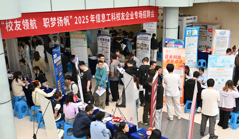 为协同促进我校 2025 届毕业生高质量就业,积极搭建校友企业与在校学子之间的高效对接平台,4月24 日下午,由校友办公室、学生工作处主办,电子与信息工程学院、计算机学院(网络空间安全学院)、软件学院、集成电路学院、人工智能学院以及长望学院联合承办的“校友领航 职梦扬帆” 2025年信息工科校友企业专场招聘会,在大学生活动中心一楼成功举办。