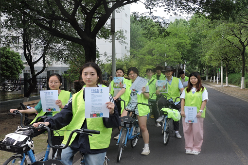 4月30日,师生们身着绿色骑行文化衫在校园内开启约5公里的绿色骑行。途中,志愿者在教学楼前广场和图书馆门口宣传垃圾分类知识,参与者完成环保知识问答即可获定制环保徽章,以倡导低碳出行,宣传环保理念。活动将低碳出行与环保宣传有机结合,用骑行这种充满活力的方式,让师生们在感受运动乐趣的同时,深刻体会绿色出行对环境保护的重要意义。